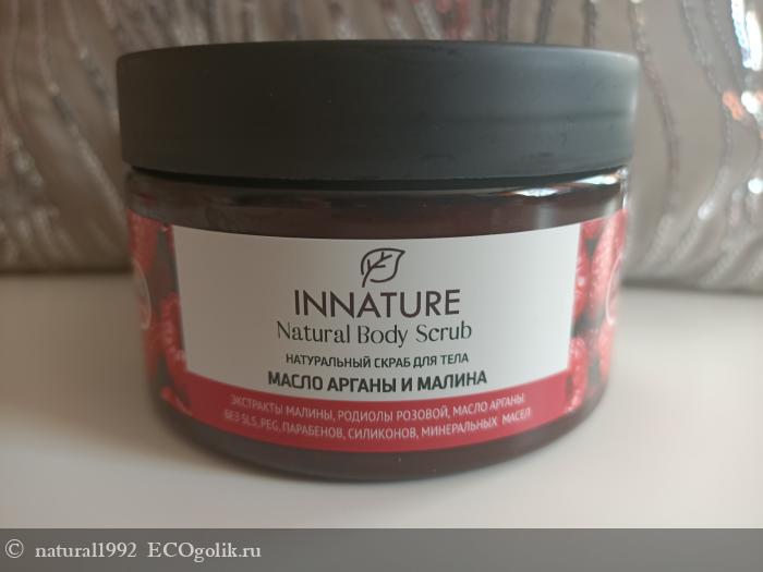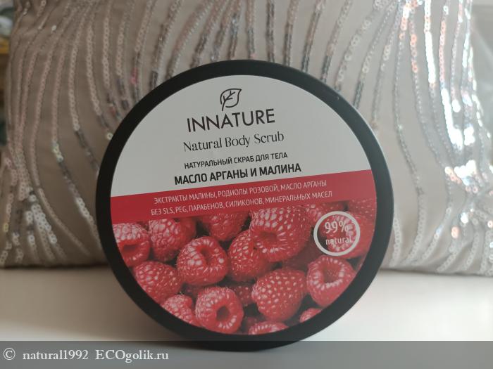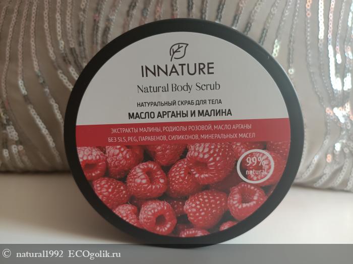 С маркой Innatureя уже знакома. Тогда мне очень понравились их средства для тела и по этому сейчас, я решила продолжить знакомство с маркой именно с них. Тогда у меня был дезодорант или гель для душа, а в этот раз я решила взять скраб для тела. Именно сейчас, в летнее время, в жару, глубокое очищения с помощью скрабов для меня очень актуально. Зимой я не так часто и активно их использую. Я выбрала натуральный скраб для тела масло арганы и малина. Выбирала чисто по положительным отзывам, без них, думаю я бы на него даже и внимания не обратила. Плюс, я очень люблю малину и вообще все ягоды. Так что я заранее знала, что мне точно понравится и не ошиблась.