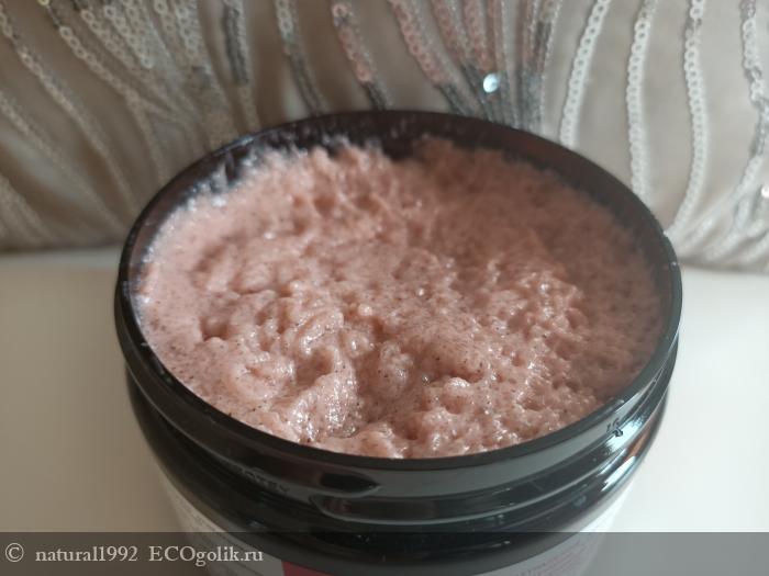 По цвету скраб светло розовый. Оттенок очень легкий, приглушенный и нежный. Аромат потрясающий
