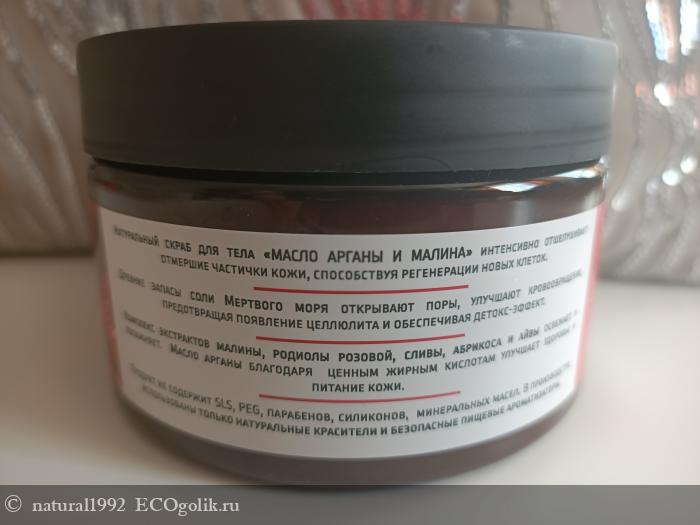 Скраб мне понравился. Ставлю ему твердую пятерку. У него отличный, полностью натуральный состав. Шикарный малиновый аромат. А по действию он мягкий, бережный, но при этом эффективный. Соотношение всех этих параметров дает мне просто идеальное скрабирование кожи тела. Скраб для меня круглогодичный. Время года влияет только на частоту его применения. А так же его спокойно можно применять и зимой. Кожу он не сушит! Не вызывает раздражения, зуда или покраснений. Никакого крема после него мне наносить не нужно. Кожа на выходе очень мягкая, увлажненная, к ней приятно прикасаться. Я ощущаю довольно ощутимое увлажнение после него, даже не сухих его участках, например пятки, логти или колени. На более проблемных участках есть тонус, упругость и эластичность.