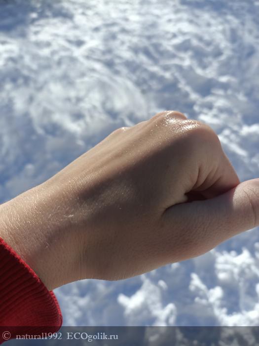 Флюидами для тела я пользоваюсь редко. В основном это молочко, лосьон или крем. Но такой формат ухода за кожей мне тоже было интересно. Я ждала от него конечно же увлажнение и смягчение кожи. Производитель нам обещает эффект мерцания. Для меня такой эффект был не обязателен, но все равно было посмотреть на него в деле и будет ли он вообще.