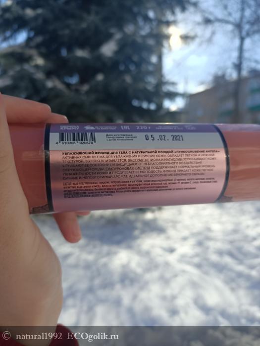 Аромат у флюида очень приятный. Прям пионовый. Мне аромат пионов в целом очень нравится, иногда покупаю парфюм на основе пионов. По этому аромат этого флюида мне тоже понравился. Текстура гелевая, но нежная. Распределяется по телу легко. Впитывается быстро, не нужно стоять и ждать. Это не крем или баттер, а именно легкий флюид, который впитывается мгновенно. По цвету он нежно розовый, с большим количеством перламутрового отлива.