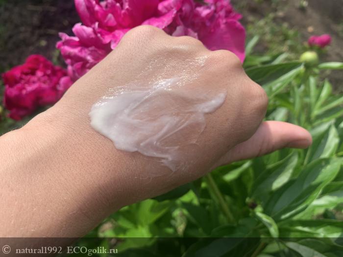 Текстура легкая, не жирная и не супер питательная. На жару то, что надо. Очень быстро впитывается и не оставляет жирных следов или полос. По цвету молочное, светло бежовое. Отдушки я какой либо там не почувствовала. Хотя в отзывах девочки писали что отдушка довольно тяжелая, я ее вообще там не уловила. На коже малыша тоже ее нет
