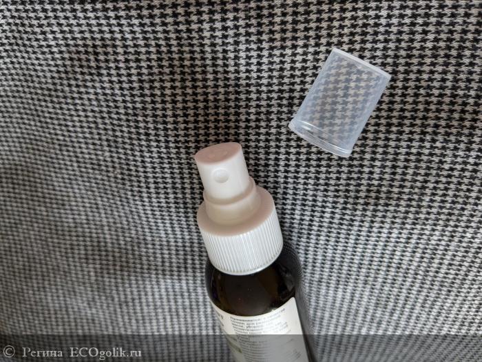 Флакончик из темного пластика с распылителем, очень удобно. Аромат еле уловимый, чувствуется легкий, чуть горьковатый запах отвара хмельных шишек, натуральный и ненавязчивый, быстро выветривается.