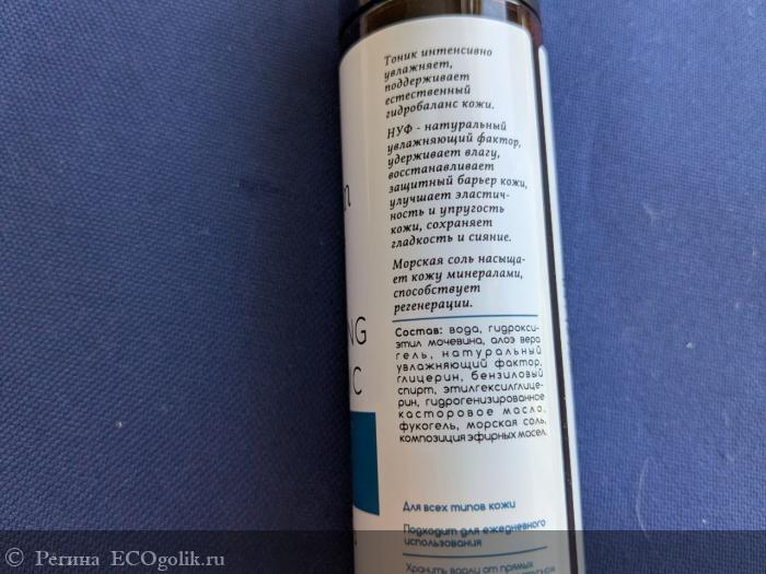 И не пожалела. Здесь соль работает не как агрессивный осушитель, а как мягкий минеральный компонент. Видимо, дело в концентрации и в том, с чем она сочетается. Рядом с ней в составе — гидроксиэтилмочевина (это более современный и деликатный увлажнитель, чем обычная мочевина), алоэ вера, натуральный увлажняющий фактор и фукогель из бурых водорослей. Получается очень грамотный баланс: минералы тонизируют, а всё остальное увлажняет и смягчает.
