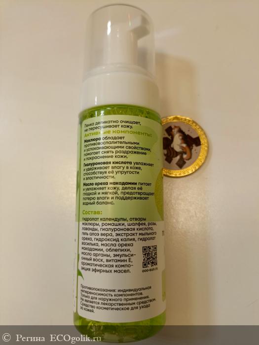 Производитель сделал акцент на комбинации очищающих и уходовых компонентов. Наличие экстракта мыльного ореха обеспечивает мягкое пенообразование. При этом гидролат календулы, отвары ромашки и маклюры оказывают противовоспалительное действие. Ключевой особенностью является присутствие масла макадамии, гиалуроновой кислоты и масла арганы, которые призваны компенсировать возможную потерю влаги во время умывания. Состав сбалансирован и ориентирован на сохранение здоровья кожного барьера.