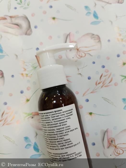 - Основа: Гидролат розы – будто варили лепестки с сахаром + алоэ вера – сочная мякоть столетника.