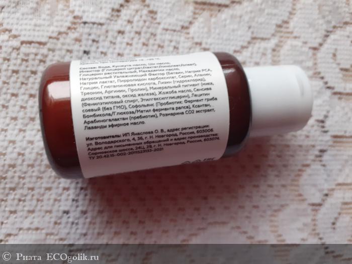 Вода, Кунжута масло, Ши масло, Имвитор (Глицерил цитрат/лактат/линолеат/олеат), Глицерин растительный, Макадамии масло, Натуральный Увлажняющий Фактор (Бетаин, Натрия РСА, Натрия лактат, Пирролидон карбоксилат, Серин, Аланин, Глицин, Глютаминовая кислота, Лизин (гидрохлорид), Треонин, Аргинин, Пролин), Минеральный пигмент (мика, диоксид титана, оксид железа), Жожоба масло, Сенсива (Фенилэтиловый спирт, Этилгексилглицерин), Лецитин соевый (без ГМО), Софольянс (Пробиотик: Фермент гриба Бомбикола/Глюкоза/Метил фермента рапса), Ксантан, Арабиногалактан (пребиотик), Розмарина СО2 экстракт, Лаванды эфирное масло.