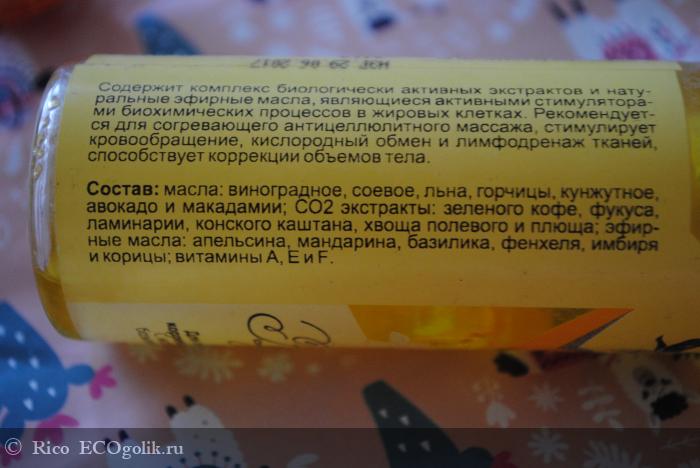 - Оно даёт хорошее скольжение, то есть для массажа подходит отлично. Обычно я просто наношу масло втирающими движениями, но раза 3 в неделю стараюсь уделить больше внимания проблемным зонам, применяя интенсивные втирания и сопровождая массажем до лёгкого покраснения. Разумеется, одно масло не избавит от целлюлита - а этом оно бессильно. Но в комплексе с правильным питанием + физическими упражнениями + дополнительным уходом (например, массаж щеткой, скрабирование) результат будет! Кожа приходит в тонус, становится более упругая и гладкая. Тем более, в составе масляной смеси есть эфирные масла цитрусовых, которые давно зарекомендовали себя при борьбе с данной проблемой)