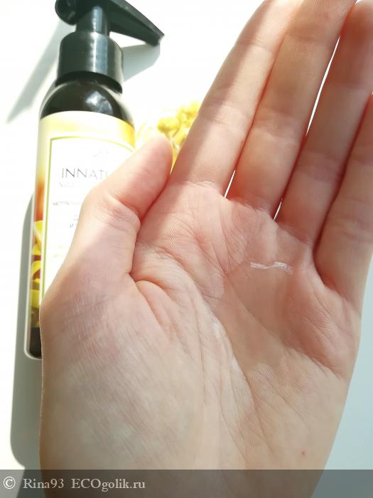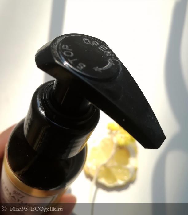 ). Или же это отдушка так себя проявила. Я склоняюсь ко второму варианту, потому что аромат, на мой взгляд, не совсем натуральностью веет. Он сладковатый цветочный с горькими, похожими на чай, нотками. Даже после смывания этот запах преследует меня до тех пор, пока я не нанесу свой уход.