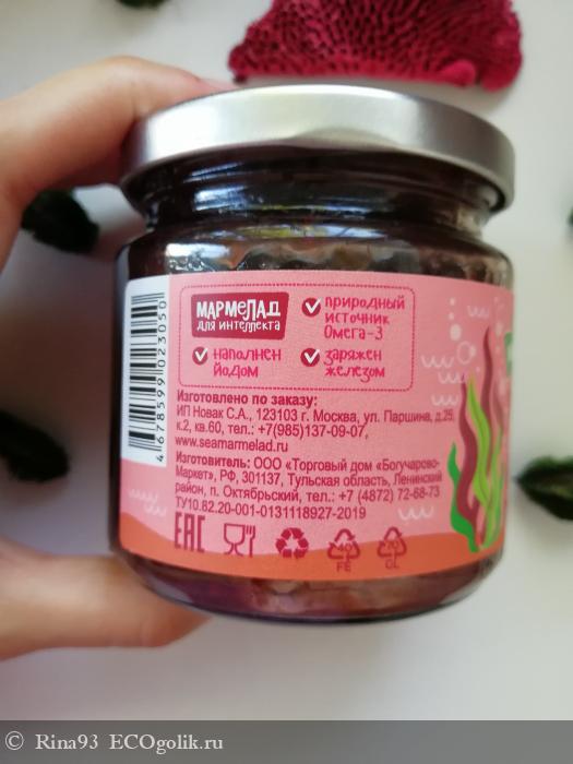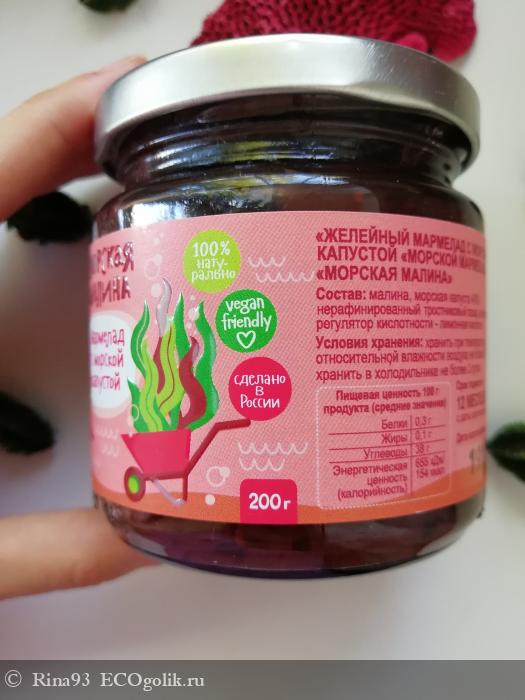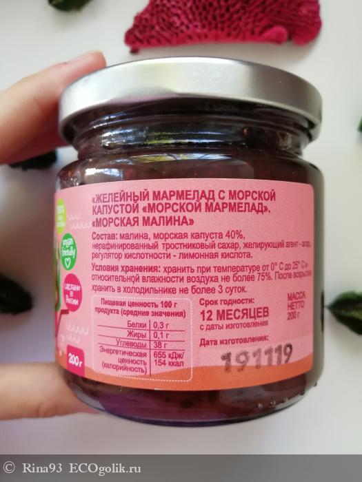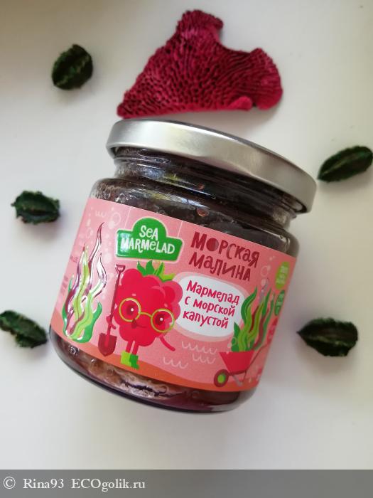 - это один из 3 морских мармеладов, который отличается и по плотности, и по аромату от других. Он более мягкий, жидкий, с вкраплениями малиновых семечек и морской капусты. А пахнет так сладко и без морских этих ноток.