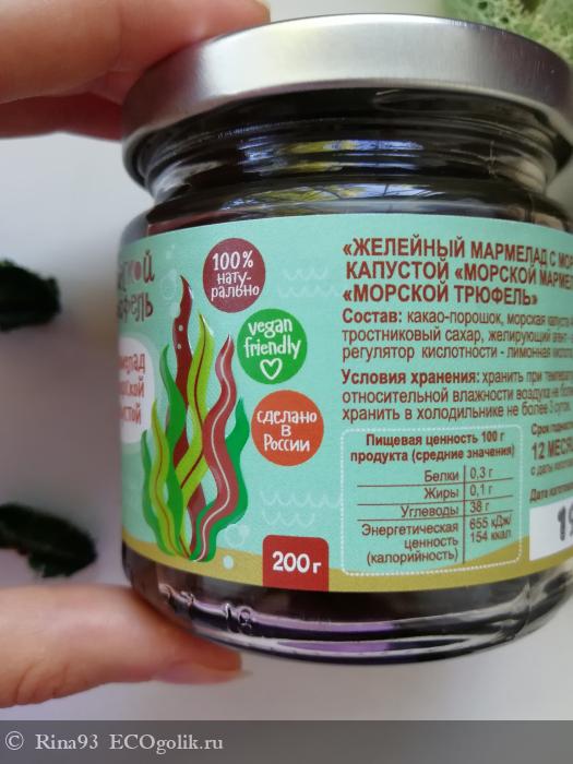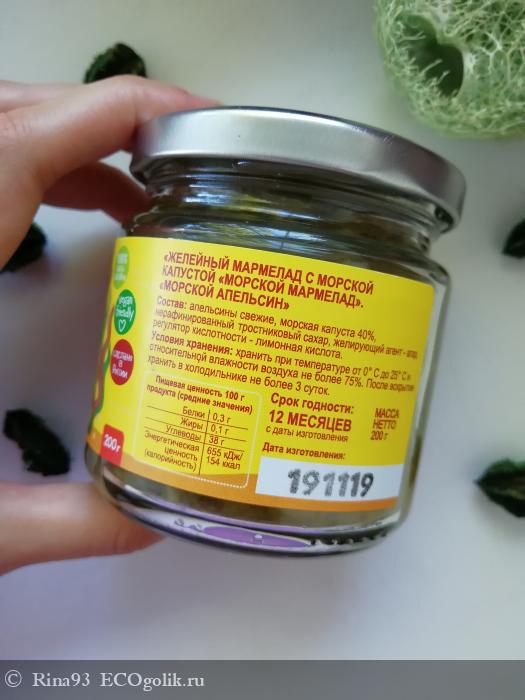 - здесь нет яркого сочного аромата апельсина и такого же насыщенного цвета. Пахнет именно сочетанием апельсина и водорослей. В этой баночке и среди всех опробованных вкусностей-полезностей от Sea Marmelad этот аромат и привкус морской капусты ощущался сильнее всего.