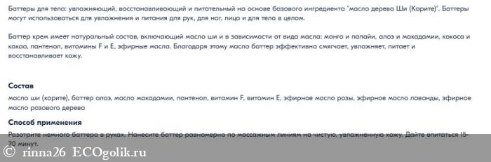 Понравился эффект нанесения после водных процедур. У него приятная текстура, информативная упаковка и эстетичная баночка. Средство хватает надолго. Аромат богатый, текстура легкая, воздушная и мягкая. Пользоваться им просто. Ложечка в коробочке защищает руки, бережет средство и сохраняет от бактерий. Впитывается баттер быстро. Аромат стойкий, поэтому лучше использовать вечером.