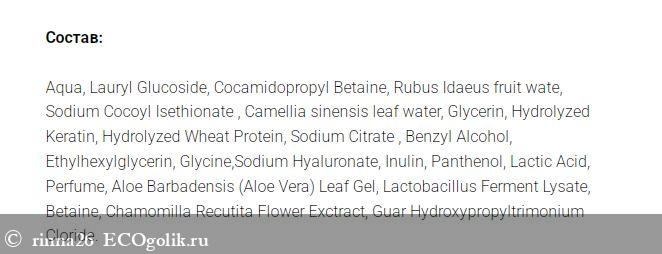 - ·Бетаин, экстракт ромашки и гель алоэ хранят целый комплекс аминокислот для питания волос, являются природными антисептиками.