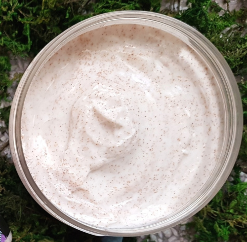 Aqua, Cetearyl Alcohol (And) Cetearyl Glucoside, Cocos Nucifera (Coconut) Oil, Butyrospermum Parkii (Shea Butter) Oil, Glycerin, Cetostearyl Alcohol, Glyceryl Stearate, Juglans Regia (Walnut) Shell Powder, Dehydroacetic Acid, Benzoic Acid, Benzyl Alcohol, Mangifera Indica Seed Oil, Tocopherol (And) Ascorbyl Palmitate (And) Ascorbic Acid (And) Citric Acid, Lippia Citriodora Leaf/Flower Oil, Cymbopogon Citratus (Lemongrass) Essential Oil.