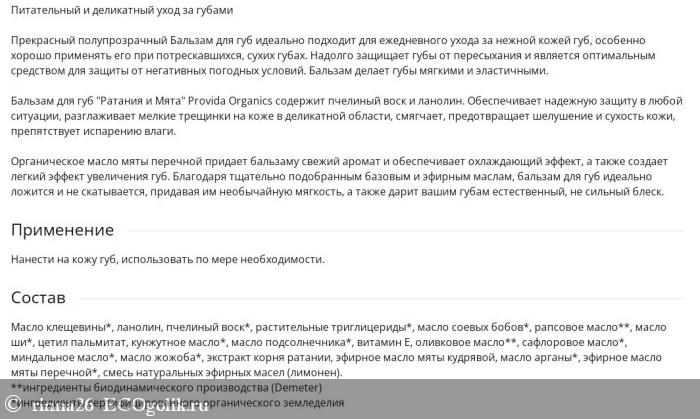 Бальзам для губ «Ратания и Мята» Provida Organics я рекомендую!