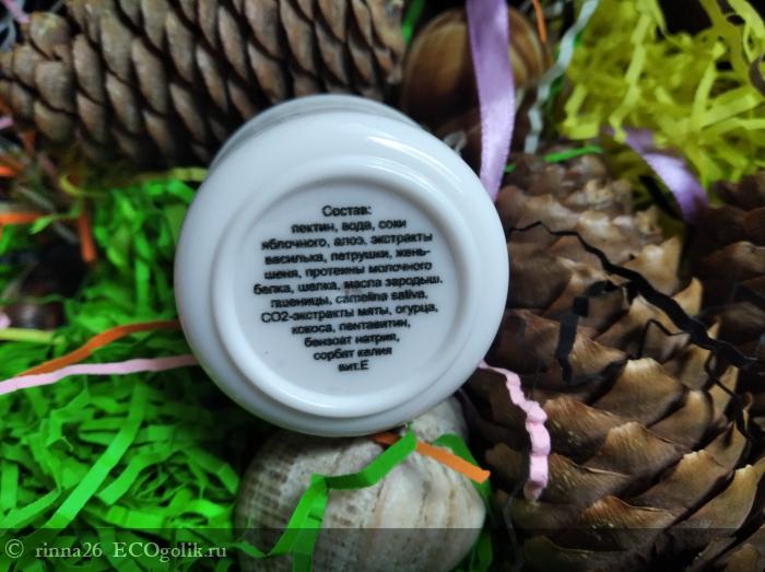 Гель пришел в устойчивой и удобной в применении (и транспортировке) баночке мини – шайбочке. На ней присутствует информативная наклейка. Инструкция по применению и логотип, также своеобразный контроль первого вскрытия.
