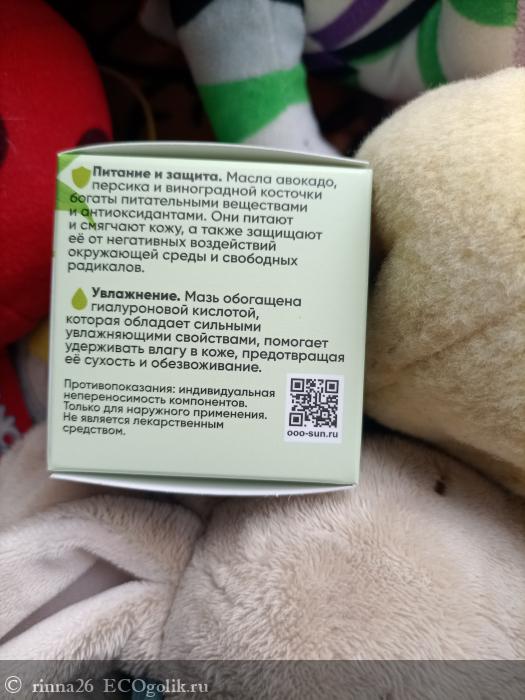 Мазь дополнена гиалуроновой кислотой, которая обладает интенсивными увлажняющими свойствами, помогает удерживать влагу, предотвращая сухость и обезвоживание кожи.