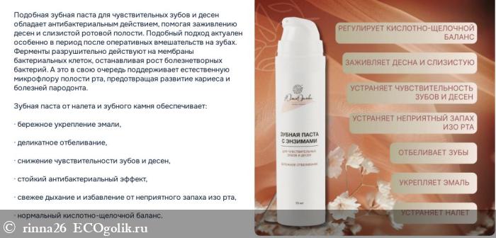 Энзимная зубная паста от нового для меня бренда пришла в удобной и информативной упаковке с рабочим дозатором. Приятно удивило мягкое, но эффективное действие и приятный вкус.