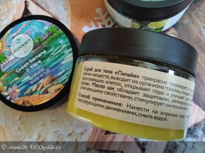Скраб легко смывается водой, а во время нанесения словно тает на коже, даря удовольствие как тактильное, так и ароматерапевтическое. Из холодного декабря без снега вы моментально переноситесь в райские и жаркие тропики. Настроение взлетает до предела!