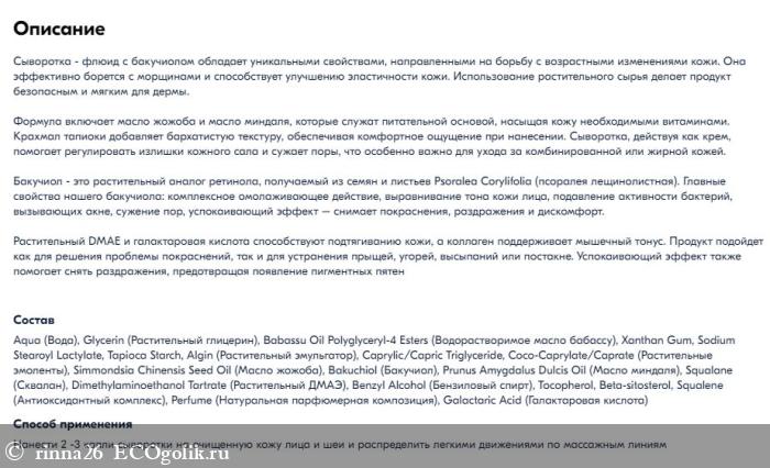 В составе используется свой бакучиол производителя, который очень сложно вырастить.