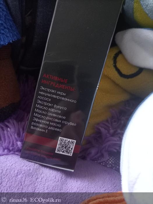 Крем был выбран из – за мощного состава и знакомого мне производителя. Запах не пугал, сразу знала, что он будет приятный и не рыбный. Упаковка картонная и информативная, дорогая, сверху еще дополнительная пленка.