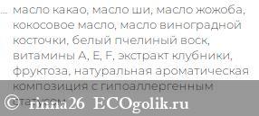 Скраб на основе баттеров деликатно отшелушивает и убирает ороговевший слой, не травмируя нежную кожу губ. Он безопасен при облизывании и выступает нежным пилингом.