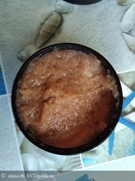 Скраб удобно использовать (и довольно экономично), не осыпается, комфортно распределяется по телу, при контакте с водой превращается в молочко, попутно даря увлажнение и питание коже.
