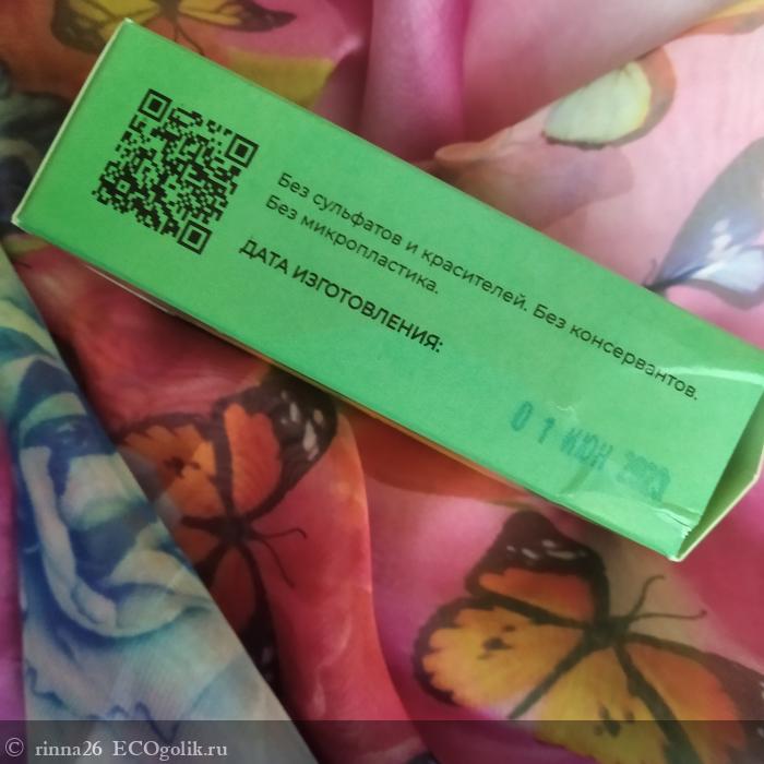 Скраб пришел в совсем неожиданном формате – брусочек мыла в твёрдой упаковке из перерабатываемого материала. Дизайн яркий, есть защита от вскрытия и вся важная информация тоже присутствует. Внутри еще доп вкладыш из бумаги. Продукт напоминает мыло, по форме, текстуре, за исключением миниатюрных вкраплений.
