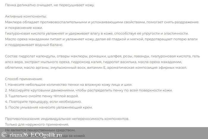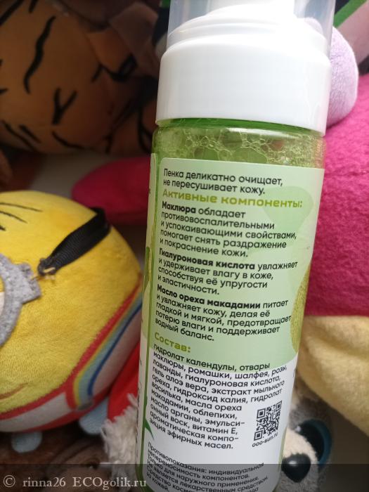 - ·Средство хорошо справляется с косметикой. Но важно, что нет красноты, неприятных ощущений и аллергии! Пенка для умывания на основе маклюры подходит даже чувствительной коже, не вызывает раздражения.