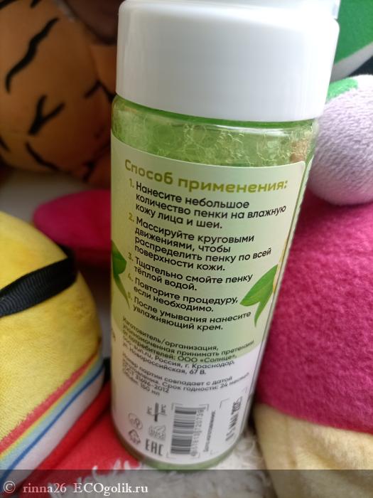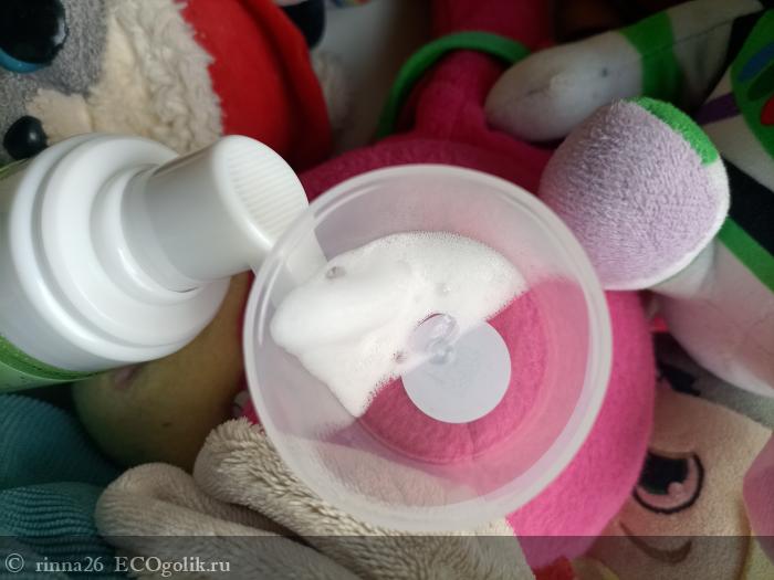 Воздушная пенка с натуральным составом пришла в информативной и классической упаковке с дозатором, который выдает порцию средства без плевков и сбоев. Благодаря круговой и яркой наклейке мы получаем всю нужную информацию.