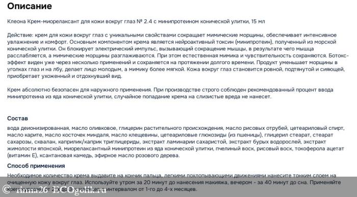 Крем-миорелаксант для кожи вокруг глаз с минипротеином конической улитки от бренда Kleona я рекомендую.