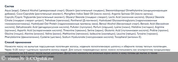 Эта пришла в баночке – шайбочке из пластика с массой нужной информации. Состав обращает на себя внимание сразу, как и экономный расход. Баночка удобная с отличной консистенцией. Нет отдушки. Упакована маска в слюду.