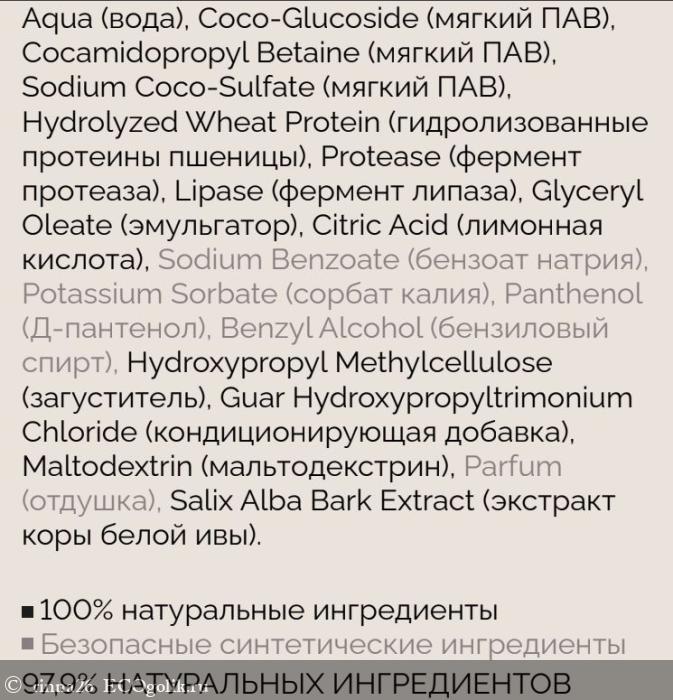 Он хорошо пениться и не содержит ничего лишнего. Волосы после не засаленные и не сбиваются, увеличивается объём и радует эффект.