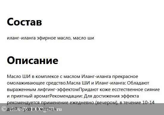 Масло Ши и другие эфирные и базовые (косметические) масла я пробовала ранее, но здесь была интересна в первую очередь именно текстура, а также подача довольно тяжелого Иланг Иланга.