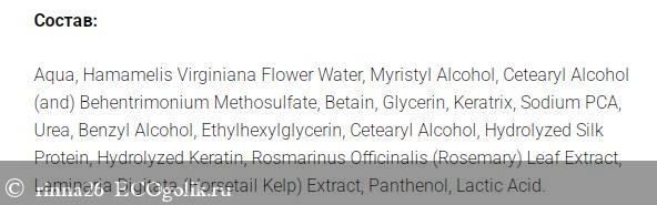 - ·Пантенол, который также имеется в составе, а также бетаин и глицерин глубоко увлажняют, препятствуют выпадению волос и ломкости.