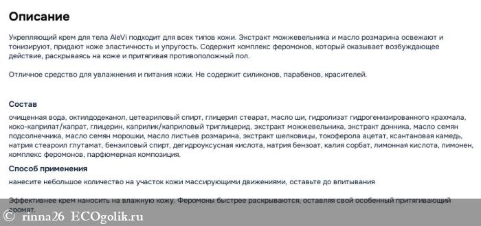 Всем хорошего дня. Спешу рассказать об удивительном продукте. В центре отзыва - Укрепляющий крем для тела с феромонами AleVi