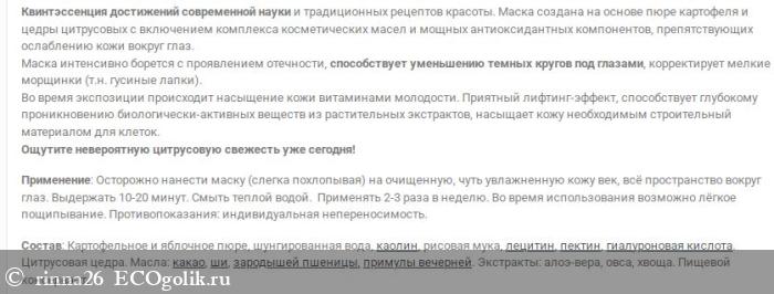 Наносить маску лучше похлопывающими движениями на чистую и увлажненную кожу, немного отступив от глаз. И лучше с ней лежать, а не ходить. Средство может немного пощипывать, но выдержать 10-15 минут просто, как и смыть водой. Аллергии, красноты, пленки или стянутости нет.