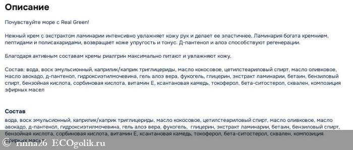 Крем для рук с ламинарией Realgreen я рекомендую!