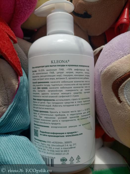 Может использоваться не только для посуды, овощей и детских игрушек, но и для очистки кухонных поверхностей, фруктов. Гель-концентрат для мытья посуды с алоэ вера – это новинка Kleona для тех, кто хочет использовать безопасные составы.