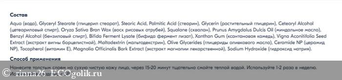Текстура у маски кремовая, нежная, цвет белоснежный. Наношу ее специальной кисточкой. Кожу не стягивает и не покалывает, нет чувства жирности и неприятных ощущений.