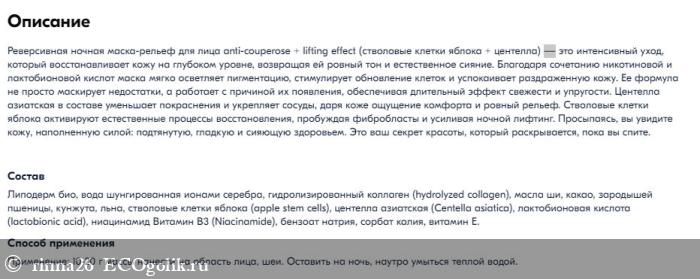 Реверсивную ночную маску-рельеф для лица anti-couperose + lifting effect (стволовые клетки яблока + центелла) от бренда ШОКОНАТ я рекомендую!