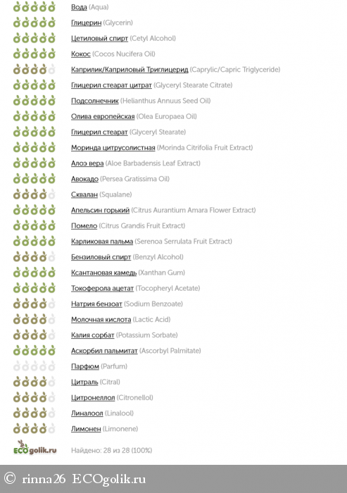 Еще больше порадовало то, что сервис одобрил 28 из 28 ингредиентов (Состав абсолютно натуральный и безопасный)! А также наличие экосертификата BDIH.