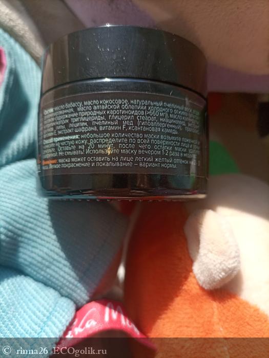 Кожа немного краснеет и покалывает. После снятия маски кожа становится рыжая. Но это быстро проходит, как и краснота после. Белье не пачкает, оказывает антиоксидантное действие и нормализует окислительный процесс, замедляет старение и восстанавливает клеточные мембраны, напитывает кожу витаминами. Облепиха в составе получается прямым холодным отжимом в максимальной концентрации, благодаря чему содержит активные компоненты.