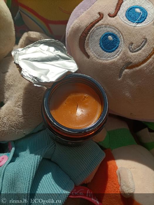 Твёрдая маска, похожая на воск, просто набирается на лопатку, которая досталась от другого производителя, тает от тепла кожи. Маслянистая за счет состава маска пахнет облепихой, что ожидаемо, хорошо распределяется и быстро впитывается. Ее лучше наносить вечером без дополнительного ухода или после мороза. Хорошо ликвидирует сухость, увлажняет и питает за счет идеального состава.