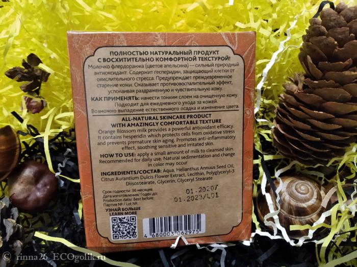 Молочко флердоранжа (цветов апельсина) — сильный природный антиоксидант. Содержит гесперидин, защищающий клетки от окислительного стресса. Предупреждает преждевременное старение кожи.