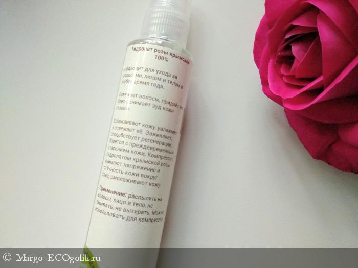 Это 100% гидролат крымской розы, который не содержит консервантов, спирта и других примесей. Вода для производства гидролата берется из горного источника.