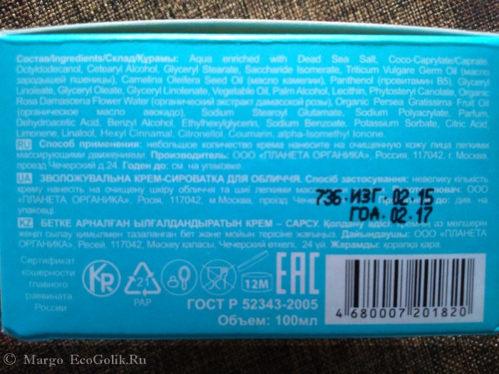 Margо: Увлажняющая крем-сыворотка для лица Planeta Organica