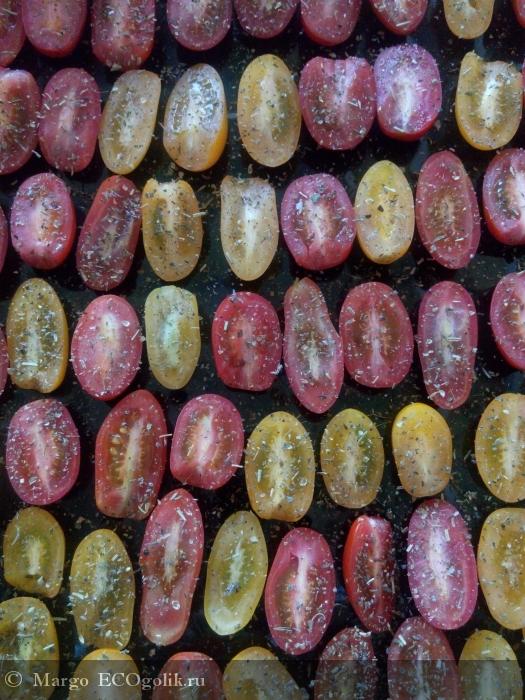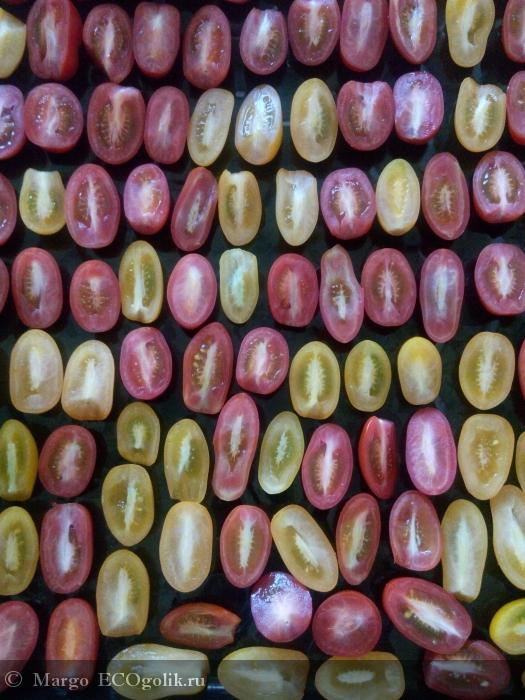 Часа через два после убавления температуры, начинаю посматривать, маленькие помидорки уже могут быть готовы. Их убираю, чтобы не стали сухариками. Когда все помидоры подсохли можно укладывать в баночки.