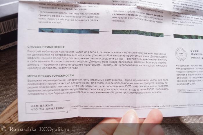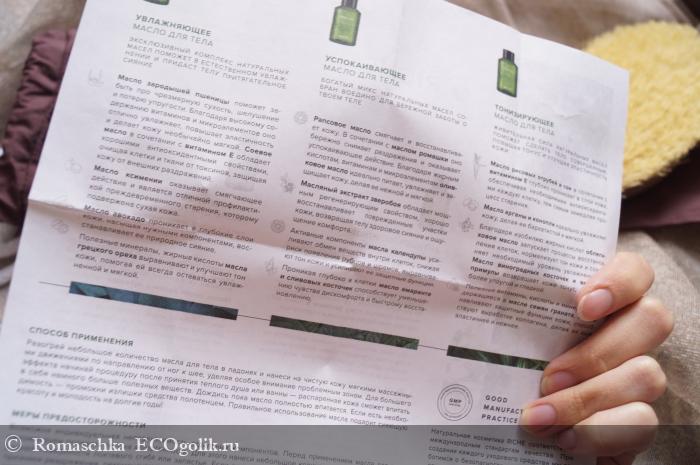 Кроме информации на упаковке есть ещё и листовка с описанием свойств масла антицеллюлитного плюс всей линейки масел.