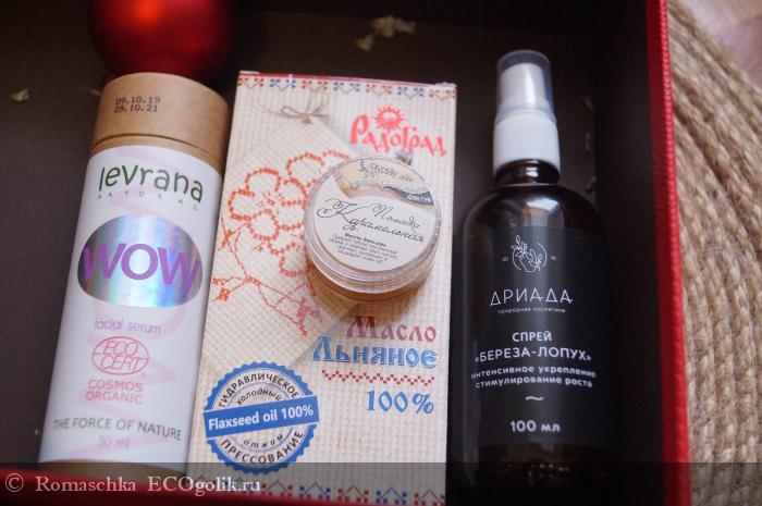 Сыворотка Леврана и Спрей от Дриада тоже уже пошли в дело. Льняное масло ждёт своего часа. Всегда заправляю им салаты, поэтому оно у меня в ходу.